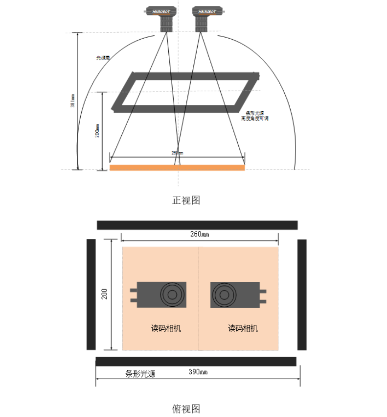 手機模組成品整合掃描讀碼方案采用雙工業相機讀取手機模組二維碼,架設高度、角度可調的條形光源,實現高效率、精準識別讀碼。