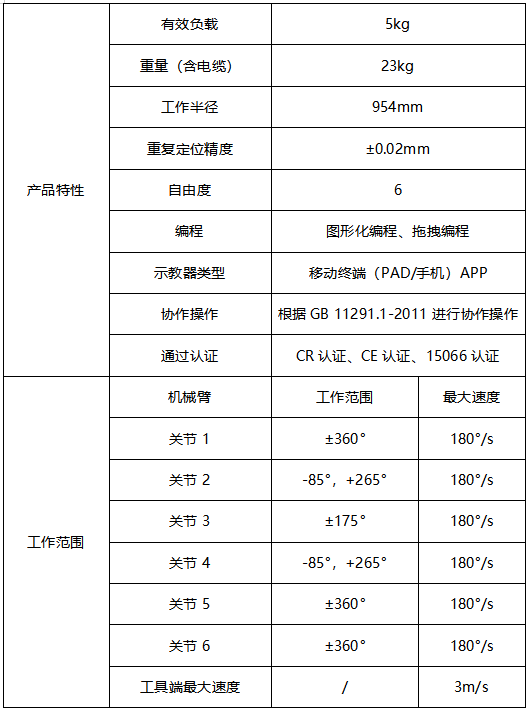 JAKA Zu 5協(xié)作機(jī)器人產(chǎn)品參數(shù)