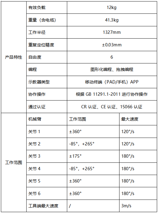 JAKA Zu 12s協(xié)作機(jī)器人產(chǎn)品參數(shù)