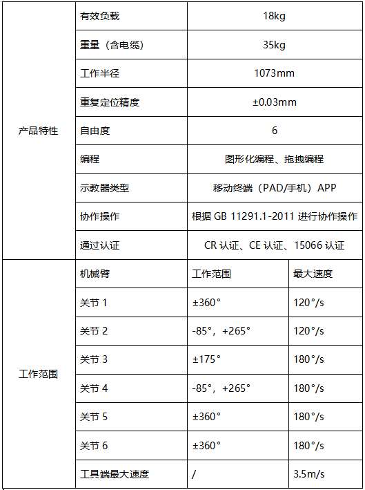 JAKA Ai 18協(xié)作機(jī)器人產(chǎn)品參數(shù):