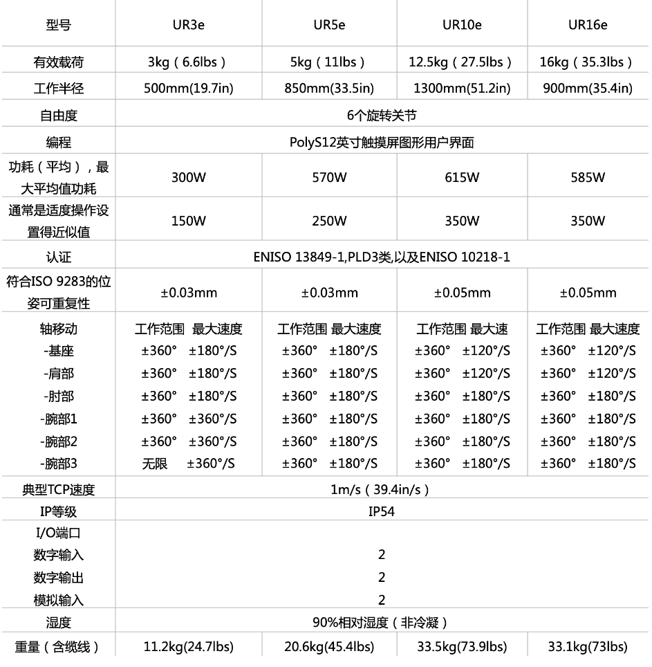 UR協(xié)作式機器人產(chǎn)品參數(shù):