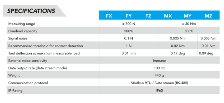 Robotiq 力矩傳感器的參數(shù):