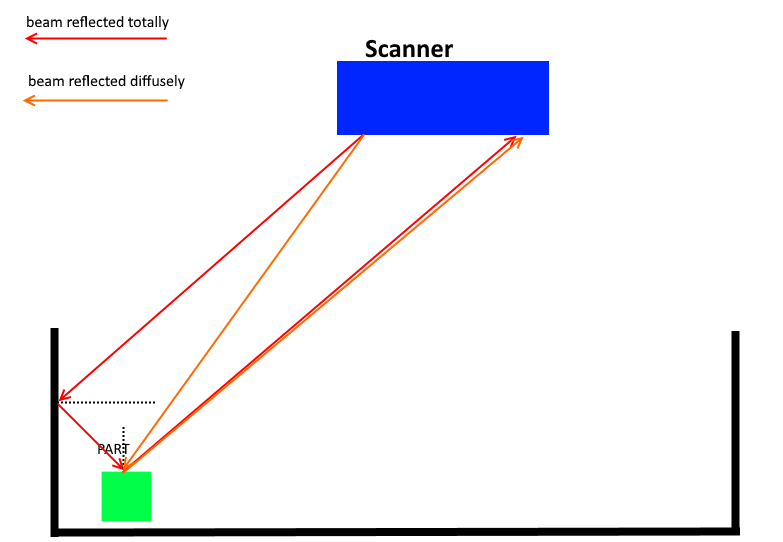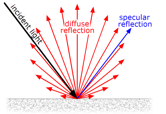 PhoXi 3D掃描儀使用投影3D圖案的漫反射來(lái)重建物體表面。以下方案描述了漫反射和鏡面反射光束之間的差異。
