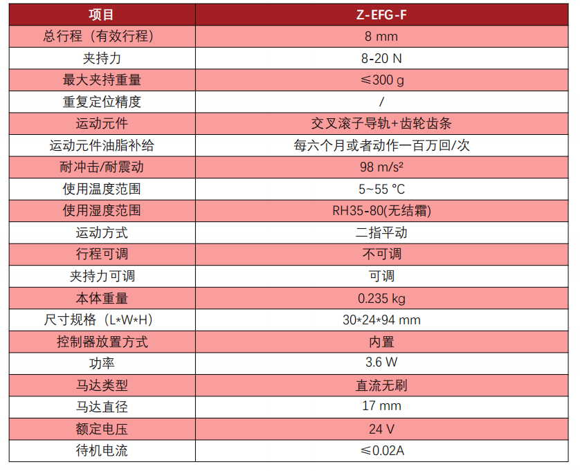 慧靈Z-EFG-F電爪詳細(xì)參數(shù):