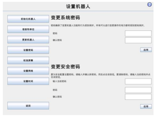 添加系統密碼可防止未授權的人員更改機器人安裝。
