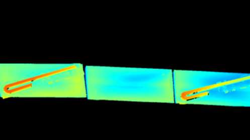 2、然后將三維點(diǎn)云數(shù)據(jù)進(jìn)行降維處理并映射二維深度圖,定位出吸管的位置,并通過濾波與分割的方式減小噪點(diǎn)對(duì)盒裝外觀點(diǎn)云的影響;