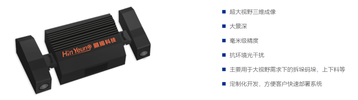 1.3D視覺傳感器:3D視覺視覺傳感器選用顯揚科技HY-MX,能夠?qū)崟r獲取工作區(qū)域內(nèi)副車架的三維信息,可對暗色、反光的副軸生成高質(zhì)量點云數(shù)據(jù),實現(xiàn)對副車架進行在線測量和質(zhì)量控制。