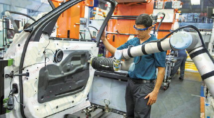 UR10可以幫助PSA Peugeot Citroen制造商每年生產(chǎn)40,000多輛汽車。在生產(chǎn)過程中,UR10固定在車輛下方的柱子上。車輛駛?cè)霑r(shí),協(xié)作式機(jī)械臂伸出來,在汽車的每一側(cè)插入三個(gè)螺釘。在生產(chǎn)中,這是確保車輛側(cè)面正確連接的關(guān)鍵步驟。UR10履行職責(zé)后,燈泡將會(huì)立即被點(diǎn)亮,手臂會(huì)重新折疊并準(zhǔn)備重復(fù)執(zhí)行此任務(wù)。