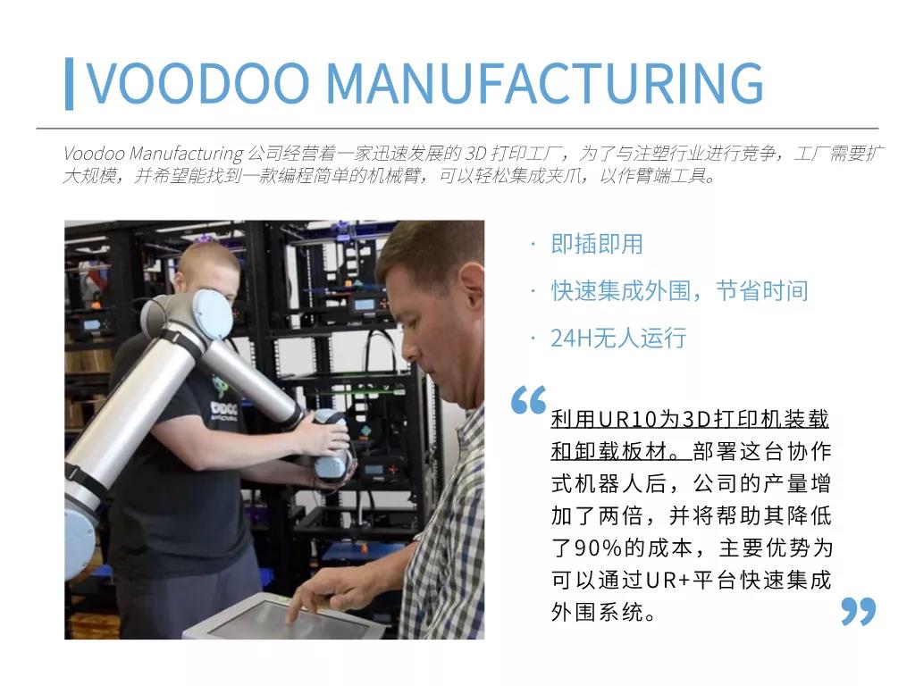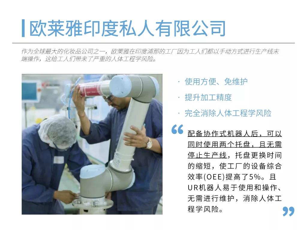 輕量化協作式機械臂可協助企業實現自動化的物料搬運流程,從而將工人從重復繁重的工作中解放出來。自動化流程不僅能夠降低產品的生產成本,縮短產品生命周期,還能緩解勞動力短缺問題,幫助企業輕松應對季節性高峰。