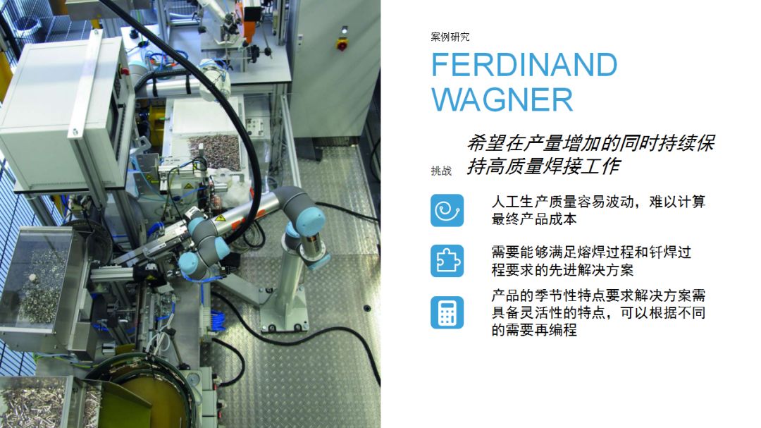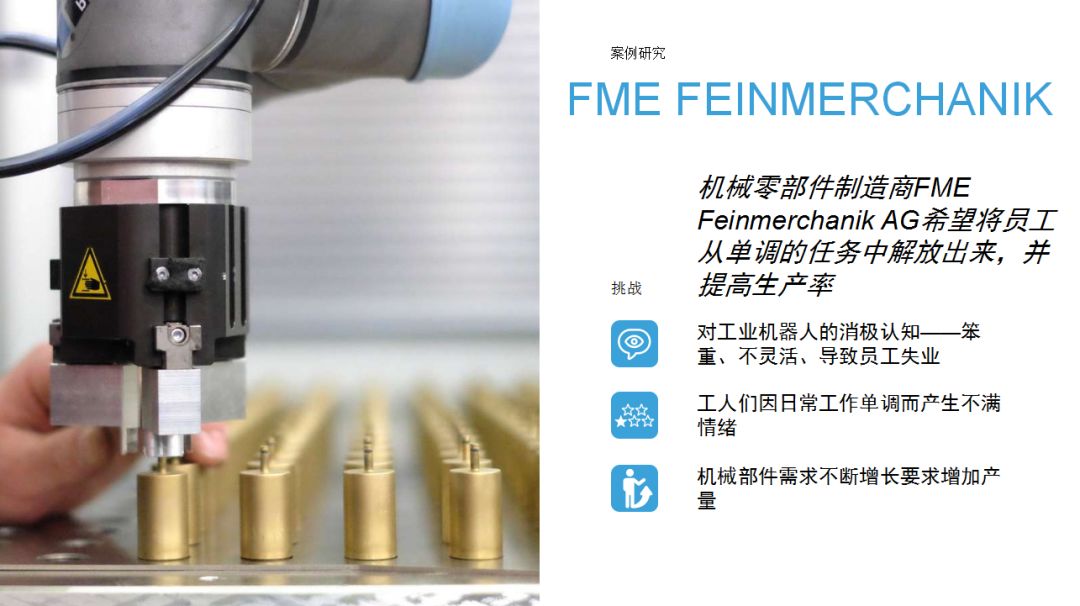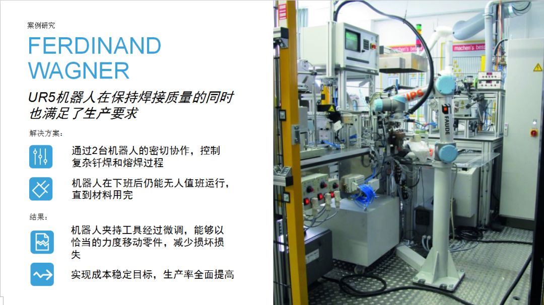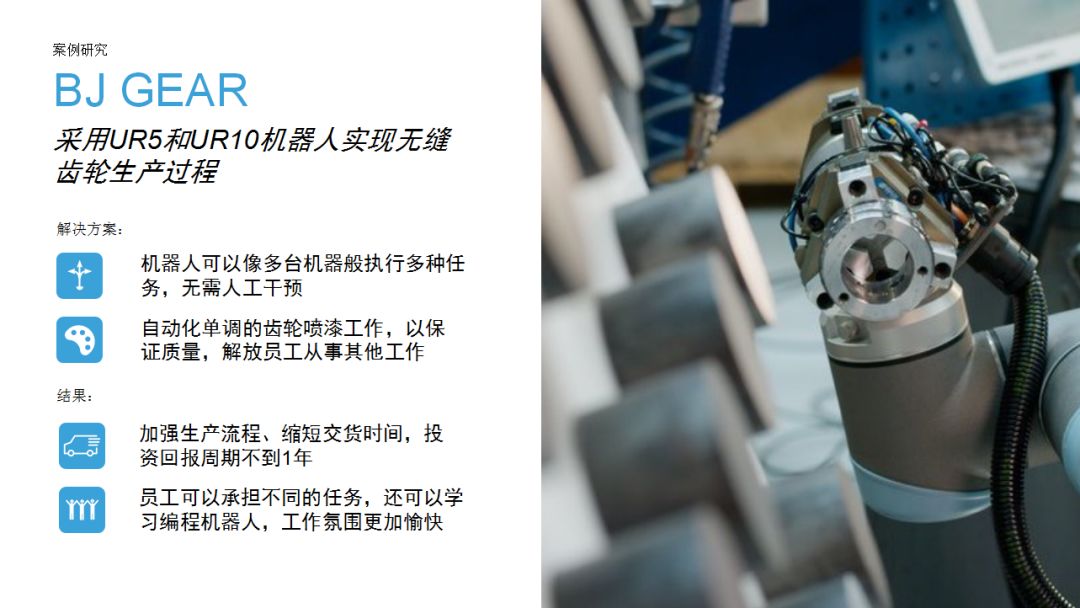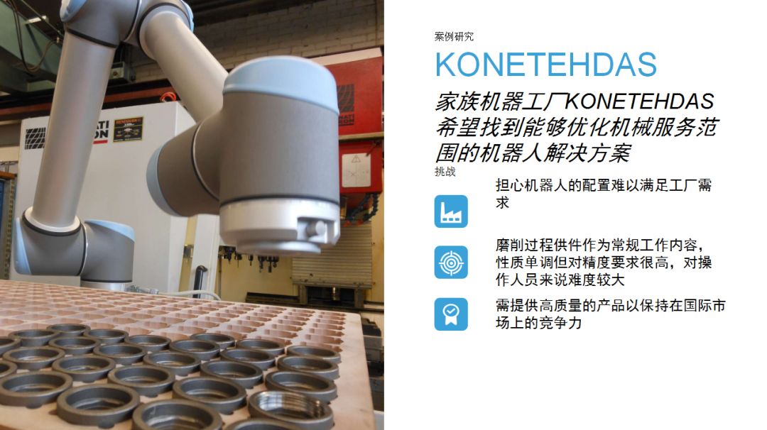 UR機(jī)器人為企業(yè)提供了一種思路:相比傳統(tǒng)工業(yè)機(jī)器人,協(xié)作機(jī)器人成本較低,占地空間小,導(dǎo)入現(xiàn)有工作流程時(shí)無(wú)需對(duì)產(chǎn)線進(jìn)行復(fù)雜和昂貴的重新部署,項(xiàng)目集成周期短。優(yōu)傲機(jī)器人始終堅(jiān)信,協(xié)作機(jī)器人擁有巨大的潛力,能夠在廣泛的應(yīng)用場(chǎng)景下協(xié)助人類工作。本期內(nèi)容中,協(xié)作機(jī)器人用于金屬加工和機(jī)床上下料,希望這些案例能夠?yàn)橛蓄愃茍?chǎng)景的用戶提供借鑒。