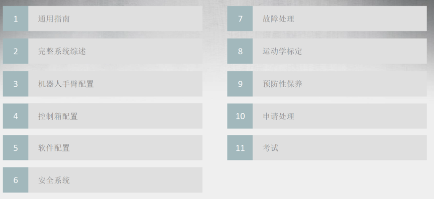 涉及機器人系統硬件,包括機械臂關節、控制柜、內部各功能器件的介紹,以及各個硬件接口的詳解、整個系統的電路圖以及控制時序圖等,方便客戶詳細了解機器人的內部結構和處理后期遇到的故障問題。