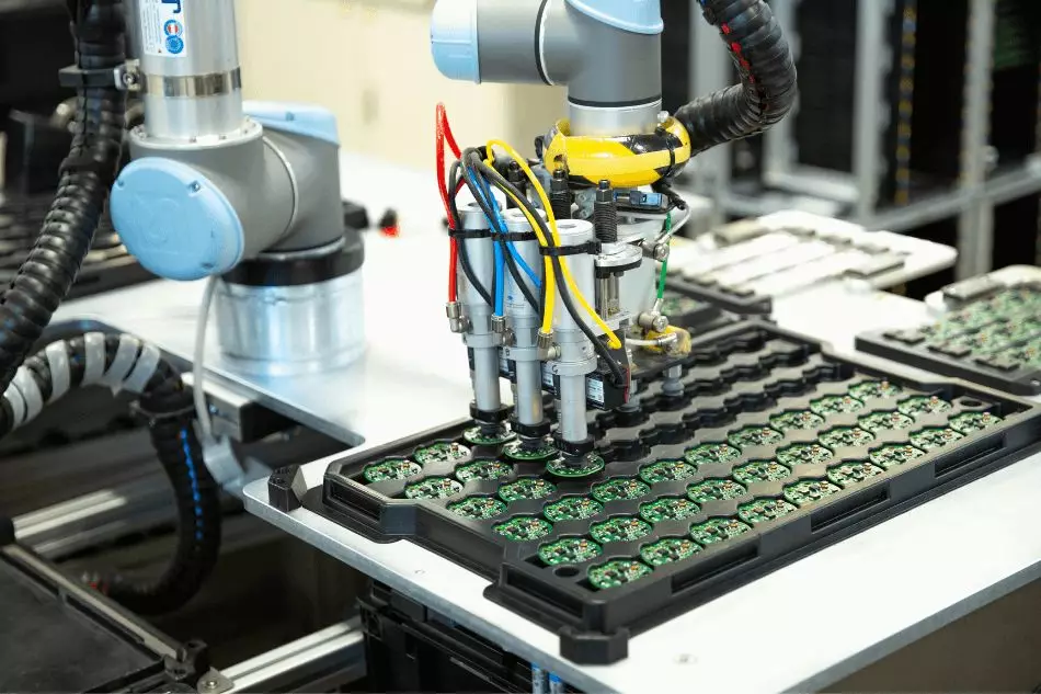電子行業是協作機器人實現各種應用的行業,包括組裝,質量檢測,搬運,分配等。2022年該行業的一項預測是“高混合,小批量”生產。