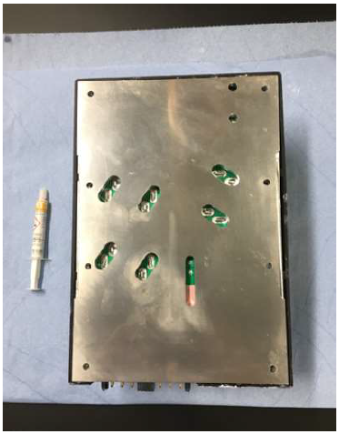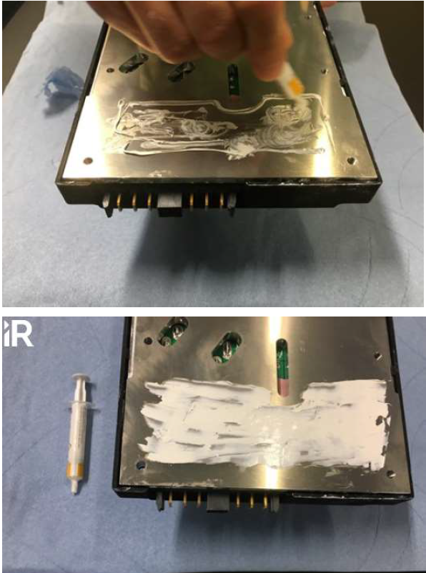 1.在電源板的金屬托架范圍上涂上散熱膠,如下圖所示: