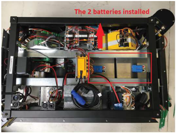 3.將第二個電池裝入MiR機器人,并使用金屬條固定。