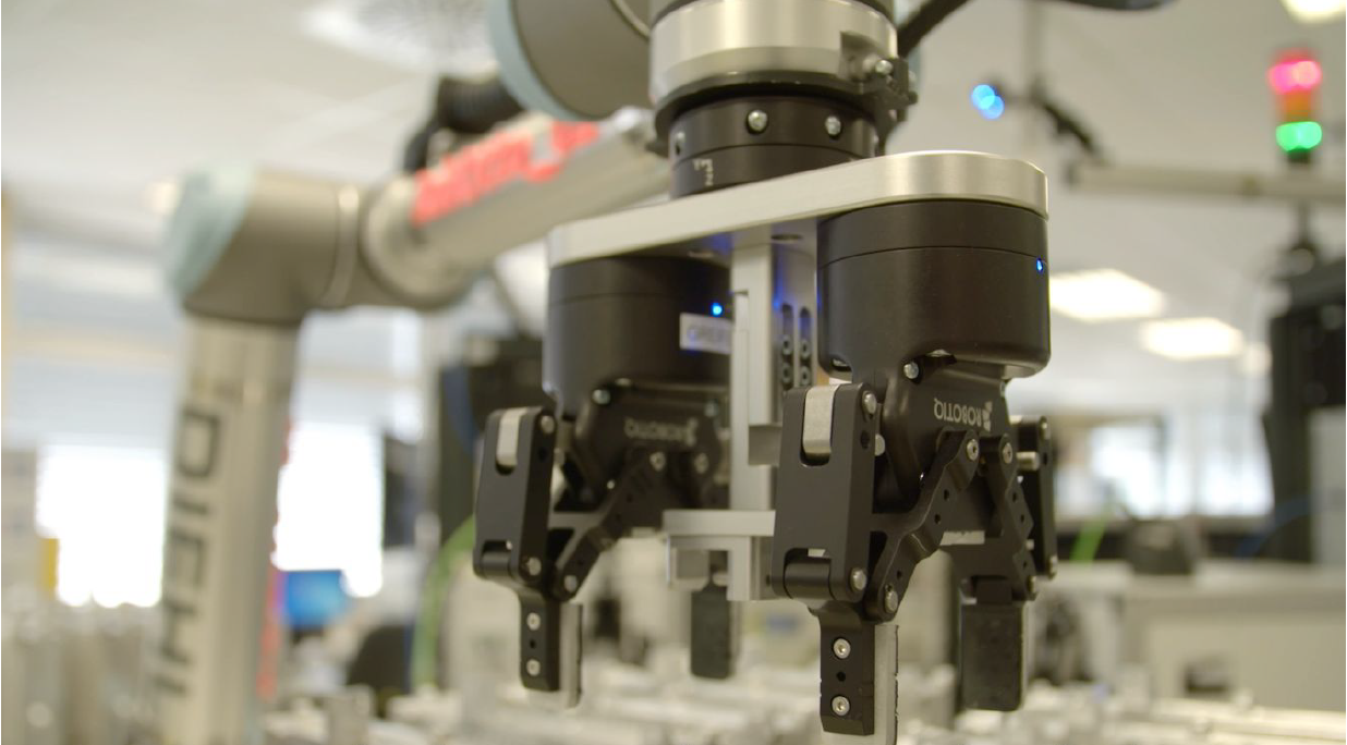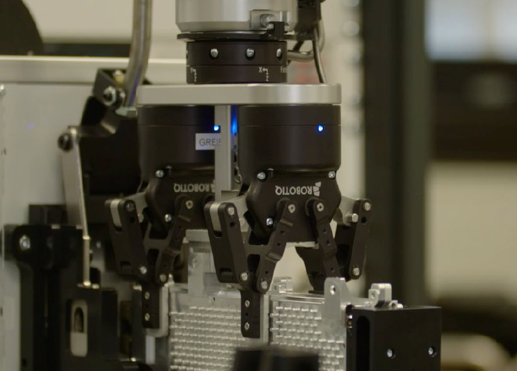 Diehl Aerospace為空客A350 XWB生產計算機系統。 由于這架飛機的訂單如火如荼,他們的質量測試部門需要迅速增加容量。 無需實施昂貴的永久夜班,因為結合了兩個Robotiq 2F-85自適應夾爪,Robotiq FT 300力扭矩傳感器和Universal Robot UR10的自動化解決方案提供了高效且靈活的機器人單元。