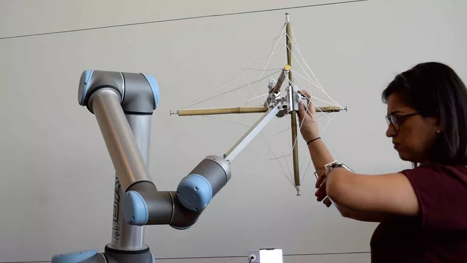 “當(dāng)我們開(kāi)辦研討會(huì)時(shí),我們做的第一件事就是讓我們的學(xué)生去優(yōu)傲學(xué)院接受培訓(xùn)。這是個(gè)非常便捷的平臺(tái):經(jīng)過(guò)幾個(gè)小時(shí)的學(xué)習(xí),他們會(huì)有足夠的信心開(kāi)始使用機(jī)器人——使用機(jī)器人編程比想象中容易多了。以前從未想過(guò)可以使用這些機(jī)械臂的學(xué)員現(xiàn)在可以在幾個(gè)小時(shí)內(nèi)自己編寫(xiě)程序。到一天結(jié)束時(shí),他們已經(jīng)能夠與機(jī)器人親密合作了,使用機(jī)器人不再是創(chuàng)作的門(mén)檻,反而幫助他們解放了思路,勾勒出更多的想法。截至本周末,他們已經(jīng)有了一個(gè)實(shí)際的工作原型。”提起學(xué)生們的編程經(jīng)歷,Anner非常自豪。