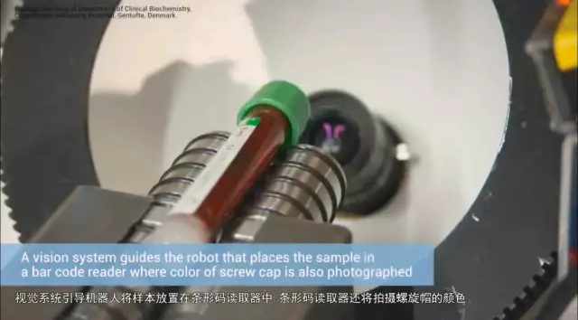 位于根托夫特的哥本哈根大學醫院采用了兩臺UR5機器人。機器人每天處理3,000個血樣,每分鐘7至8個。第一個機器人使用小型氣動吸盤,拾取輸送機上經由管道系統到達的樣本,視覺系統引導機器人將樣本放置在條形碼讀取器中,條形碼讀取器還將拍攝螺旋帽的顏色,并將樣本轉移到正確顏色的支架上。第二臺UR5機器人從機架中拾取樣本,并將其放入入口模塊中,將樣本送往離心分析和后續分析環節。