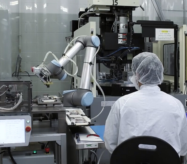 優傲協作式機器人幫助您降低人員對敏感流程和清潔環境造成污染的風險。優傲協作式機器人的機械臂可用于無菌、精確搬運和裝配醫療器械或植入物。機器人還可以將工人從灰塵多、噪音大、震動高的物料搬運工作中解放出來,讓他們可以從事更有價值的任務。借助UR+認證的視覺系統,協作式機器人可以進行詳細的質量檢驗。
