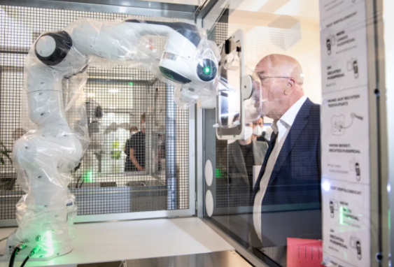 移動核酸檢測采樣站的出現大大改善了醫護人員的工作環境,給他們提供了一個舒心舒適的環境。Franka Emika公司在這個基礎上開發了利用Franka Emika機器人來代替醫護人員進行取樣。2021年4月,巴伐利亞商業協會主席Wolfram Hatz在德國自動化公司Franka Emika的一次媒體活動上用機器人做了一個喉嚨拭子。該機器人可以進行冠狀病毒咽喉拭子檢查,幾乎完全自動工作。測試人員只需要將嘴圍在一個吹口周圍,Franka機器人用棍子從其口中取出喉嚨拭子,這就完成了核酸取樣。